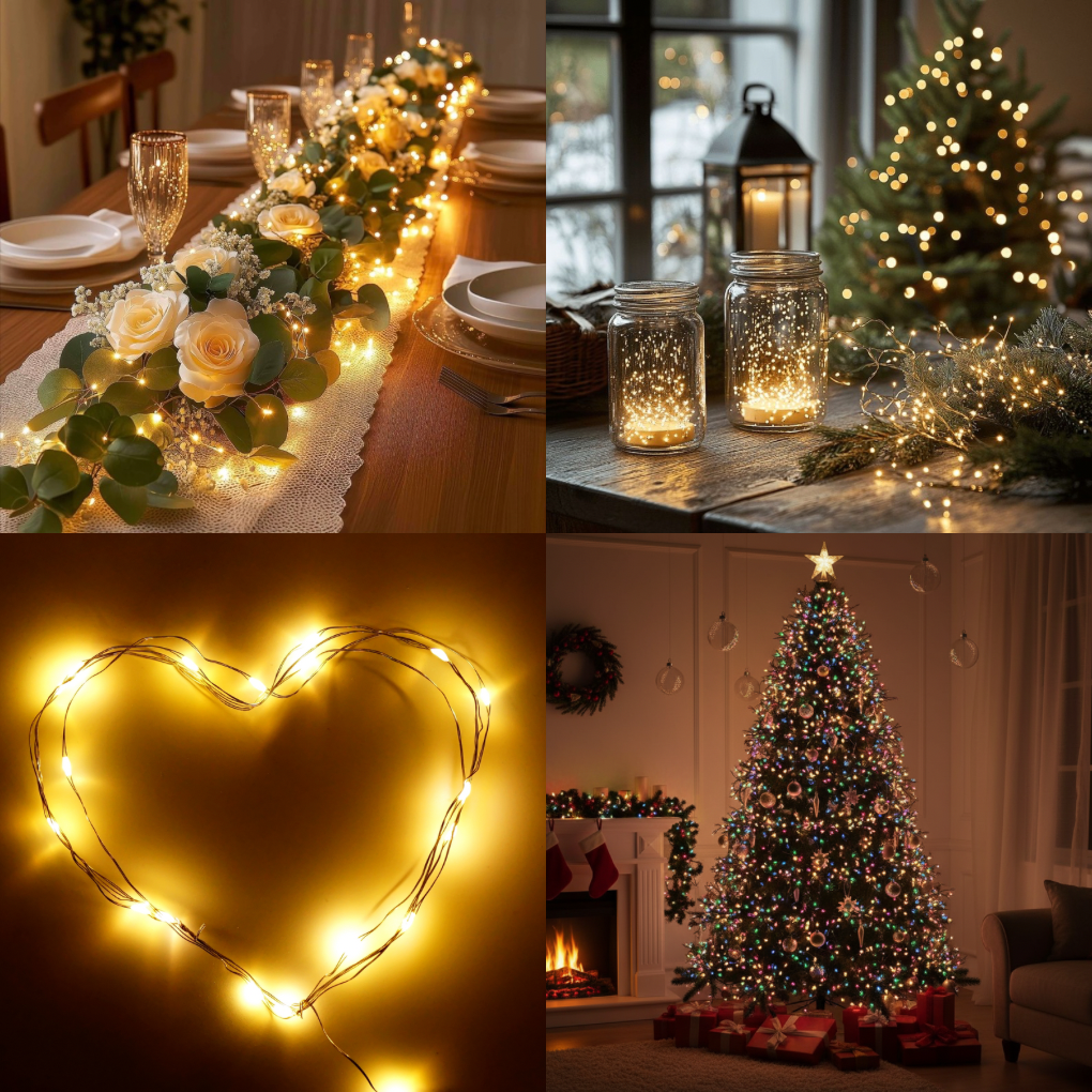 Son fil de cuivre souple et discret s’adapte facilement à vos décorations : sapin de Noël, terrasse, mariage ou ambiance cosy. Avec sa télécommande pratique, vous profitez de 8 modes lumineux, d’un variateur d’intensité et d’une minuterie automatique pour créer l’atmosphère parfaite en un clic.