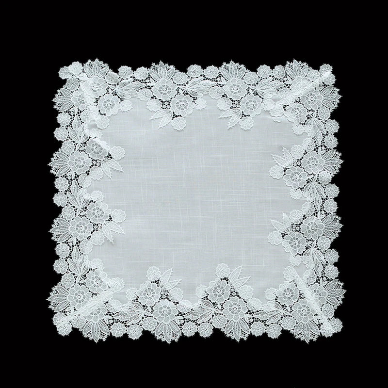 Nappe blanche de table américaine en dentelle brodée florale